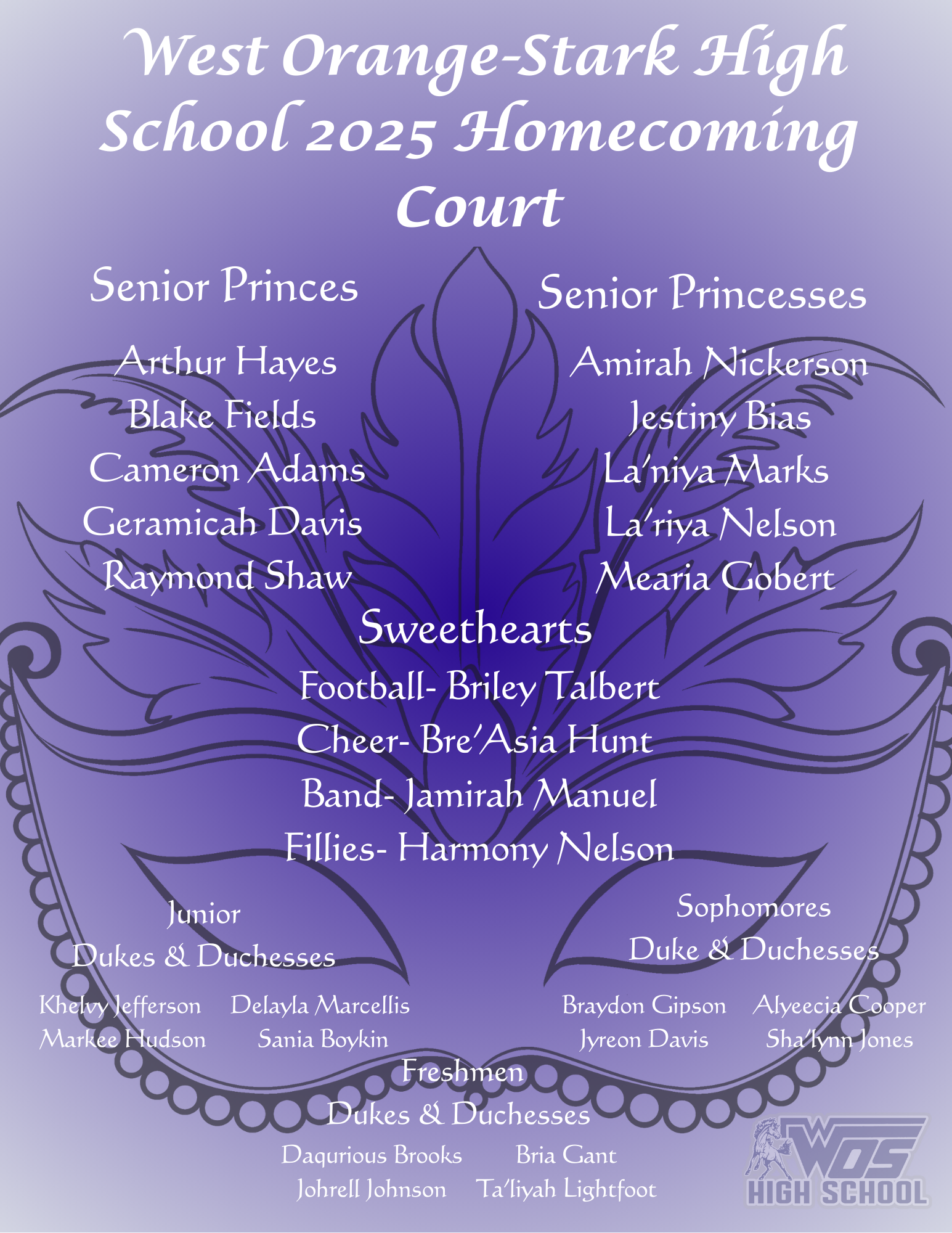 West Orange-Stark High School 2025 Homecoming Court! Congratulations to our West Orange-Stark High School 2025 Homecoming Court!
